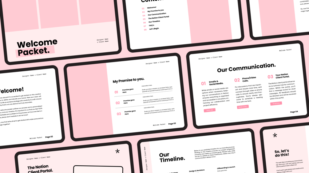 Set the stage for success with my "Complete Client Onboarding Kit." Designed for brand designers and creative agencies, this kit provides everything needed to introduce your clients to your process with clarity and style.